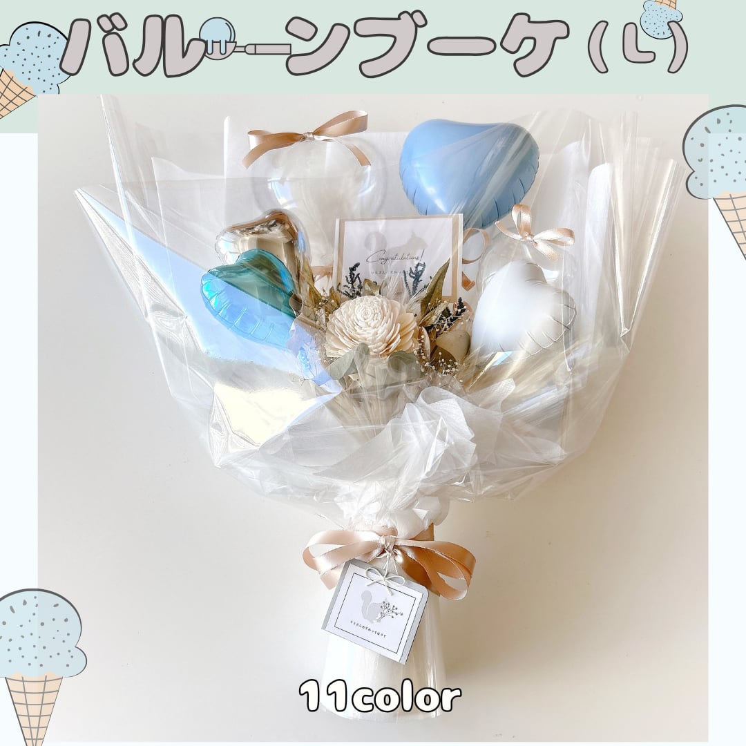 この商品は、お客様に【風船の色】を選んでいただいて作るオーダーメイドブーケです。